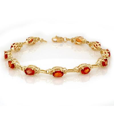 Gemstone: Natural Sapphire----Gemstone color: Orange----Gemstone quality: Good-to-Very Good----Gemstone Cut & Weight: 11 Oval cut @ 8.0 ctw----Metal Purity & Color : 10K Gold-Yellow----Gold weight: 7.20 grams----Dimension: Approx. 7 x 3/16Consignor: World Jewelry Outlet----Delivery: Within 10 business days