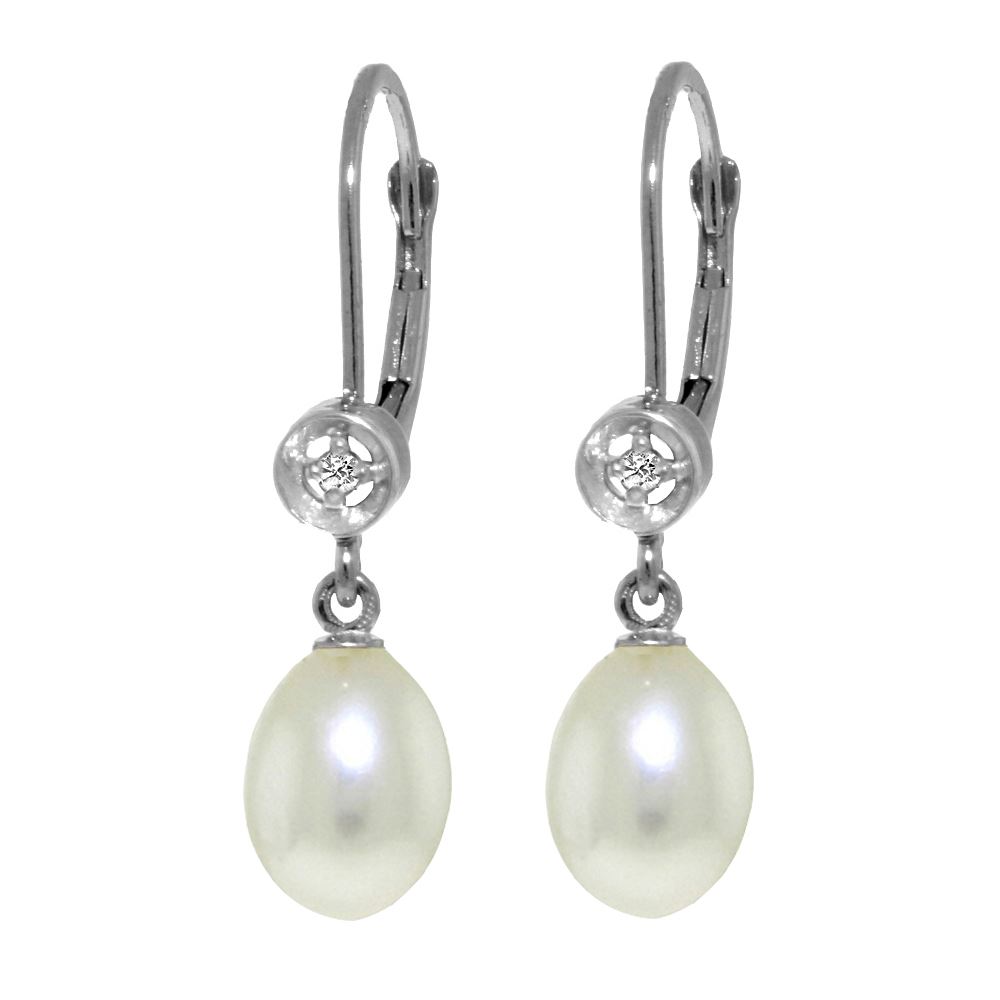 Genuine 14K White Gold 8.03 ctw Pearl & Diamond Earrings