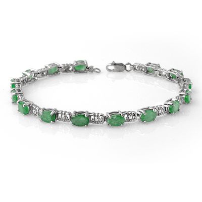 Genuine 8.10 ctw Emerald Bracelet 10K White Gold * MSRP $1870 ---- Gemstone: Natural Emerald----Gemstone color: Green----Gemstone quality: Good-to-Very Good----Gemstone Cut & Weight: 15 Oval cut @ 8.10 ctw----Metal Purity & Color : 10K Gold-White----Gold weight: 6.30 grams----Dimension: Approx. 7 x 1/8----Shipping: Within 15 business days
