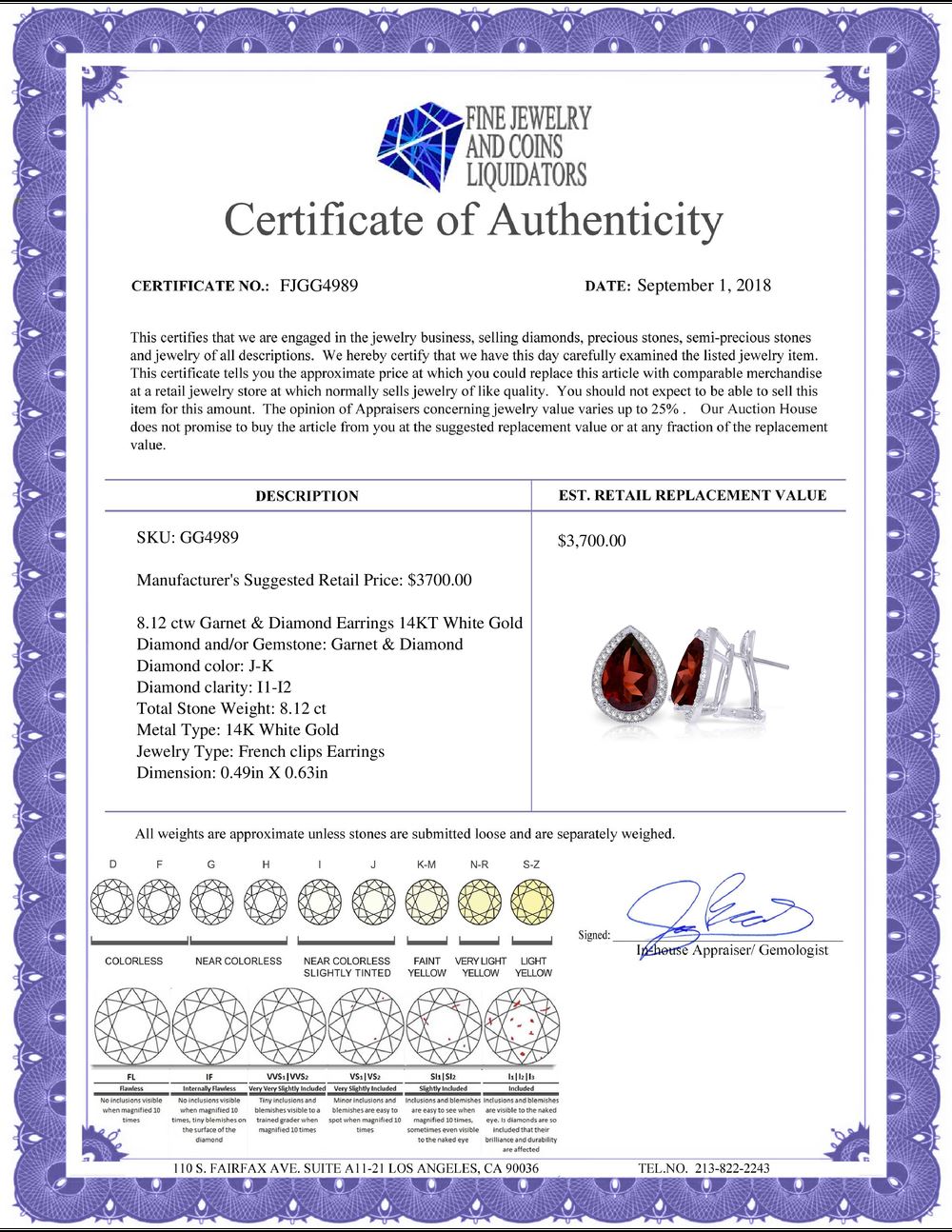 All Gia and EGL Diamonds are subject to availability due to consignors’ terms with us.