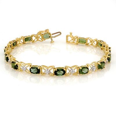 Genuine 8.15 ctw Green Tourmaline & Diamond Bracelet - Retails for $3330 ---- Diamond: 14 Round cut @ 0.15 ctw---- Clarity: SI-I---- Color: H-K----Gemstone: Natural Tourmaline----Gemstone color: Green----Gemstone quality: Good-to-Very Good----Gemstone Cut & Weight: 14 Oval cut @ 8.0 ctw----Metal Purity & Color : 14K Gold-Yellow----Gold weight: 9.10 grams----Dimension: Approx. 7 x 3/16----Shipping: Within 15 business days