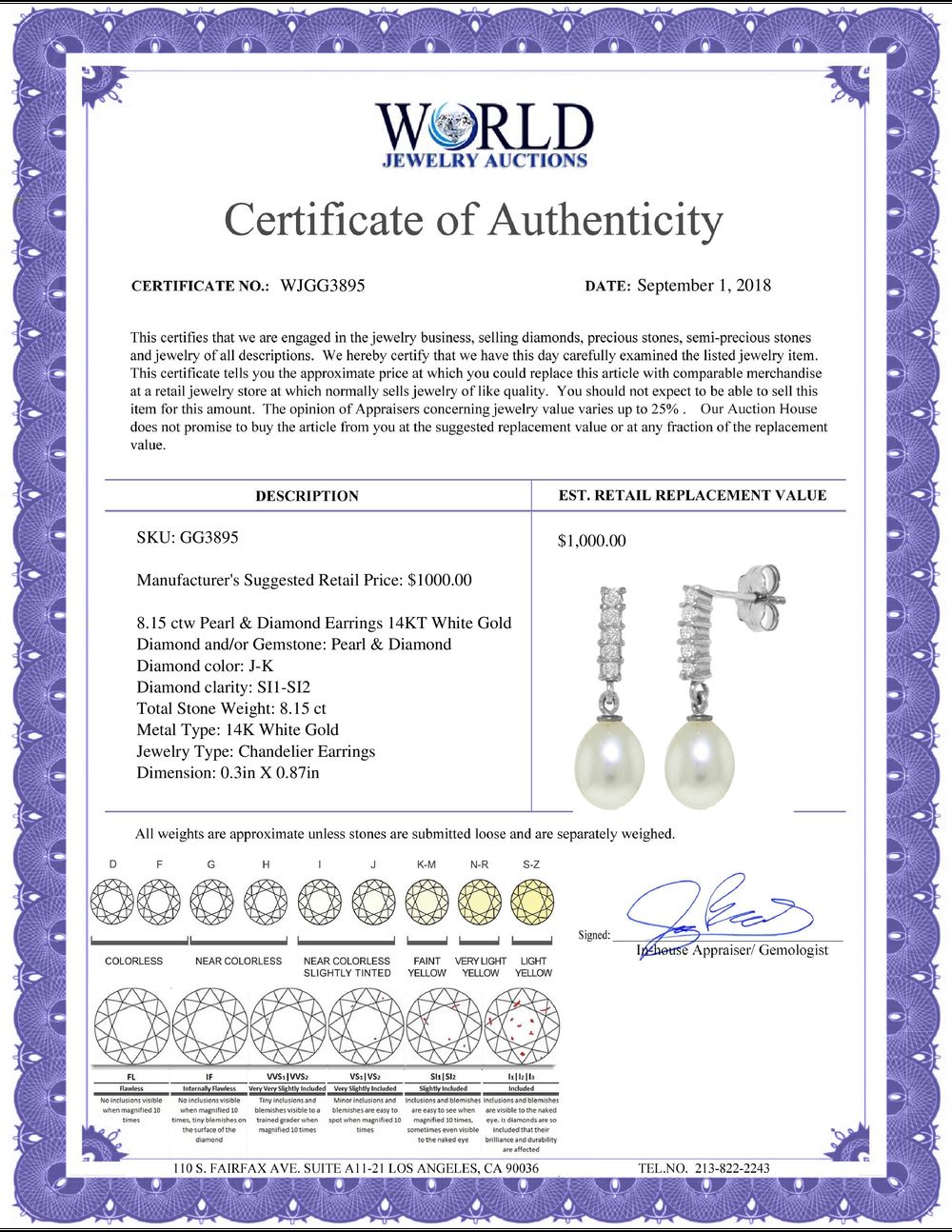 REF-33N2R - SKU: GG3895 ---- Genuine 8.15 ctw Pearl & Diamond Earrings 14KT White Gold