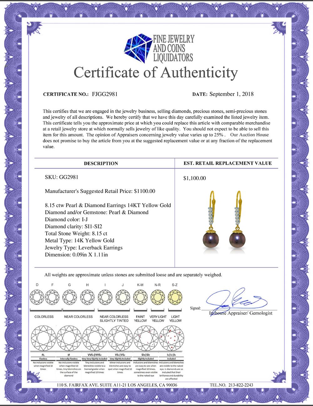 REF-34M7T - SKU: GG2981 ---- Genuine 8.15 ctw Pearl & Diamond Earrings 14KT Yellow Gold