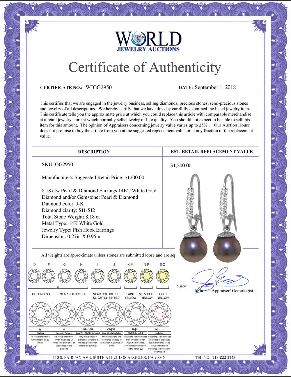 REF-37W6Y - SKU: GG2950 ---- Genuine 8.18 ctw Pearl & Diamond Earrings 14KT Rose Gold