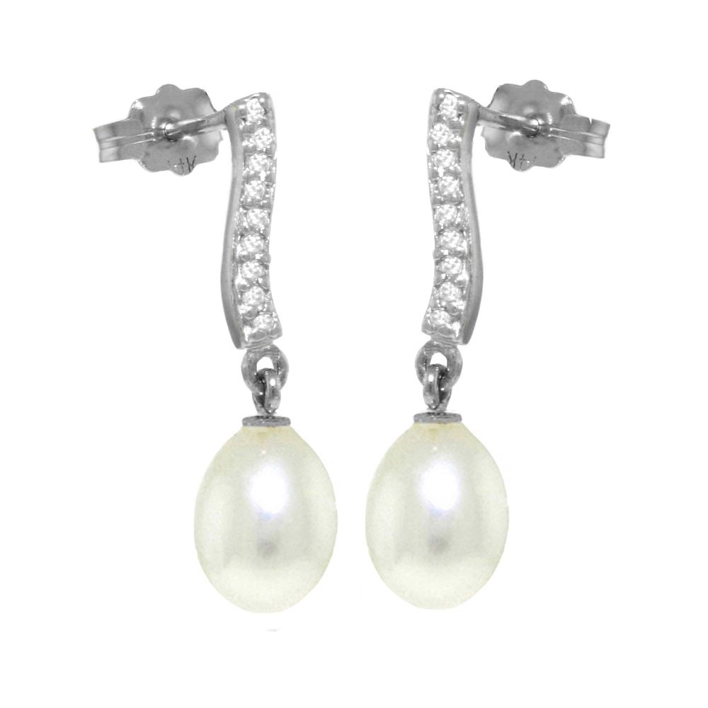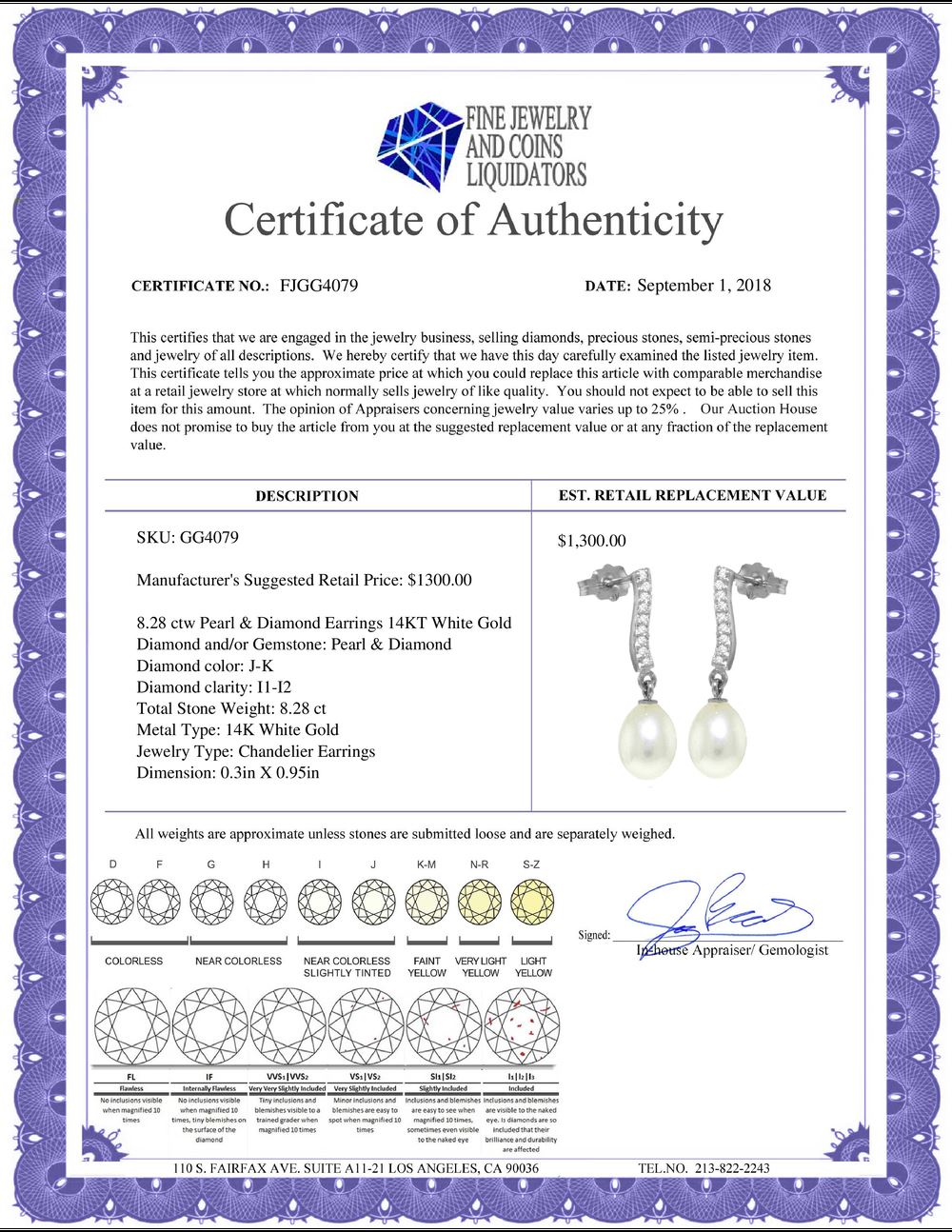 Genuine 14K White Gold 8.28 ctw Pearl & Diamond Earrings