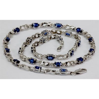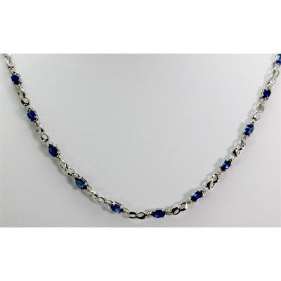 Genuine 8.42 ctw Sapphire Diamond Necklace14k **|**|** Mainstone: Sapphire ; Metal: White or Yellow Gold ; Weight(g): 9.82 ; Total CTW: 8.42 ; Diamond Count: 2 ROUND CUT ; Diamond CTW 1: 0.02 ; Clarity :SI-I ; Color: G-H; Gem Count: 24 OVAL CUT ; Clarity Rating: AA-AAA ; Gem Size(mm): approx.3x5mm ; MSRP: $3461