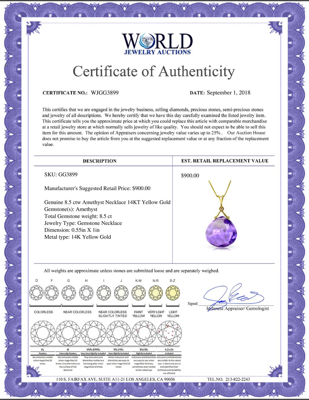 REF-26W9Y - SKU: GG3899 ---- Genuine 8.5 ctw Amethyst Necklace 14KT Yellow Gold