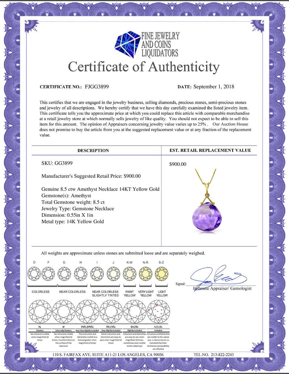 REF-26W9Y - SKU: GG3899 ---- Genuine 8.5 ctw Amethyst Necklace 14KT Yellow Gold