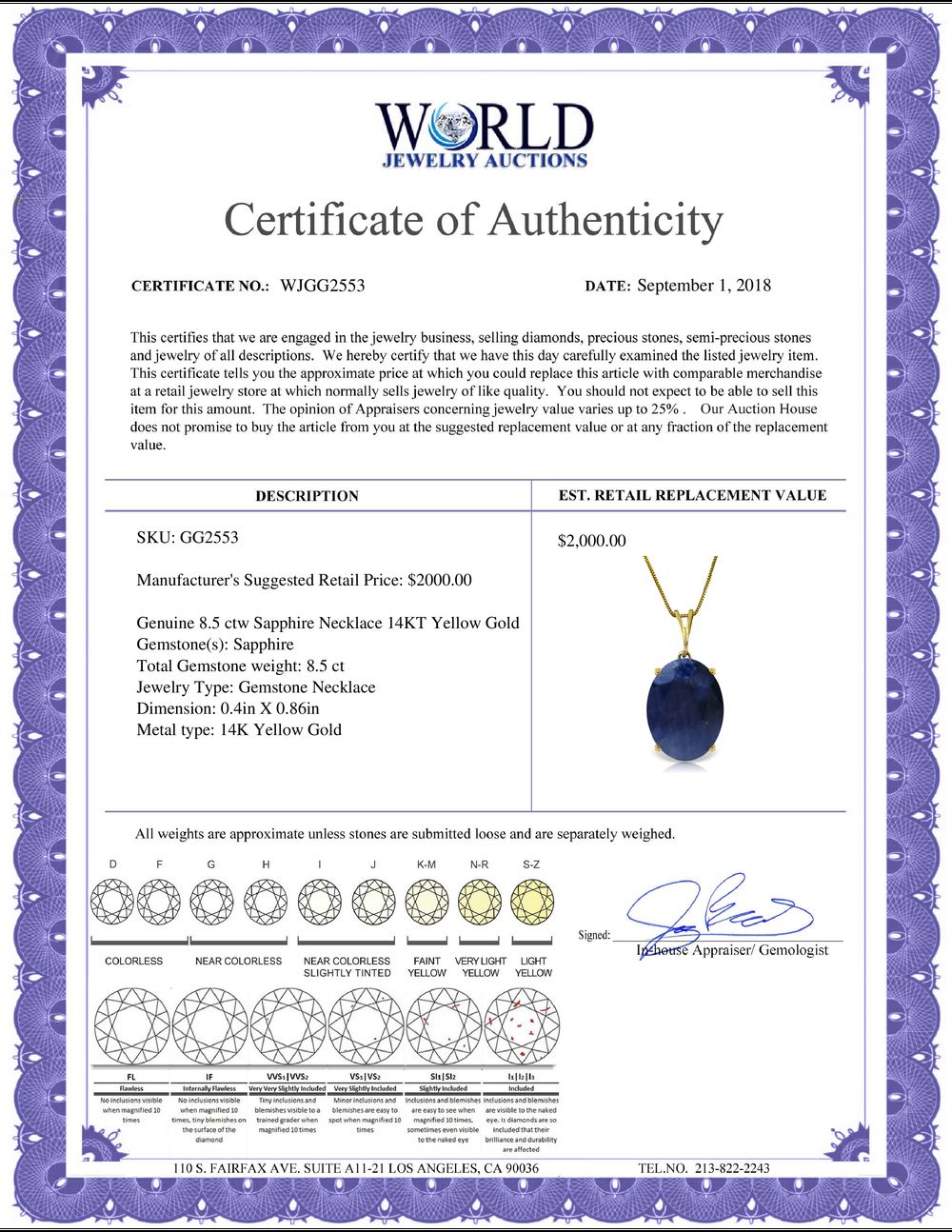 REF-64T7A - SKU: GG2553 ---- Genuine 8.5 ctw Sapphire Necklace 14KT Yellow Gold