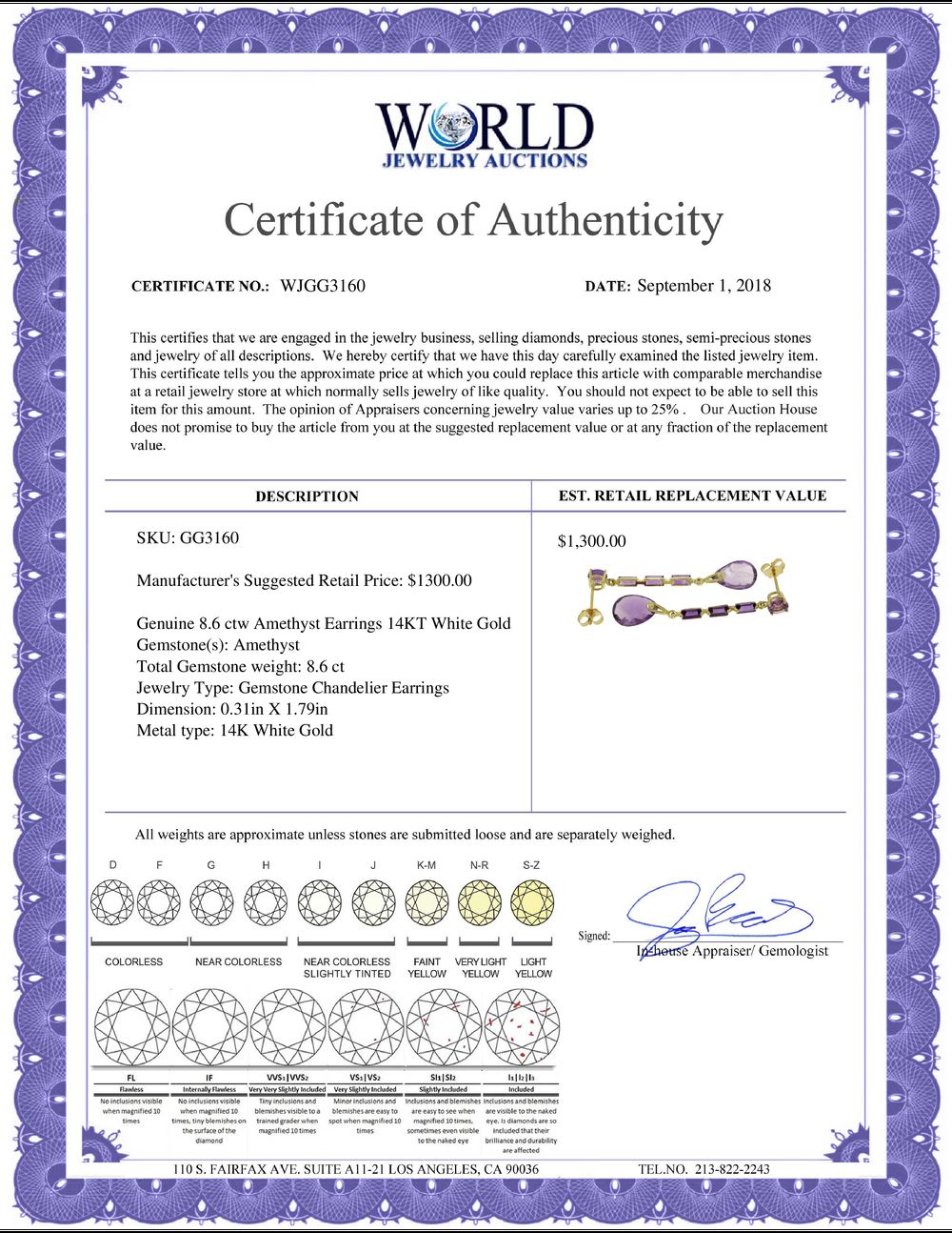 REF-43X3M - SKU: GG3160 ---- Genuine 8.6 ctw Amethyst Earrings 14KT Rose Gold