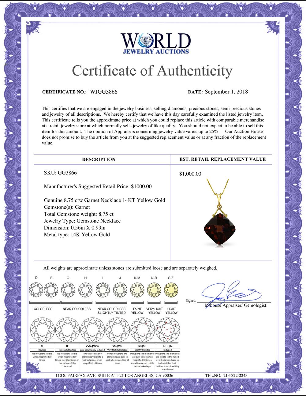 Genuine 14K Yellow Gold 8.75 ctw Garnet Necklace