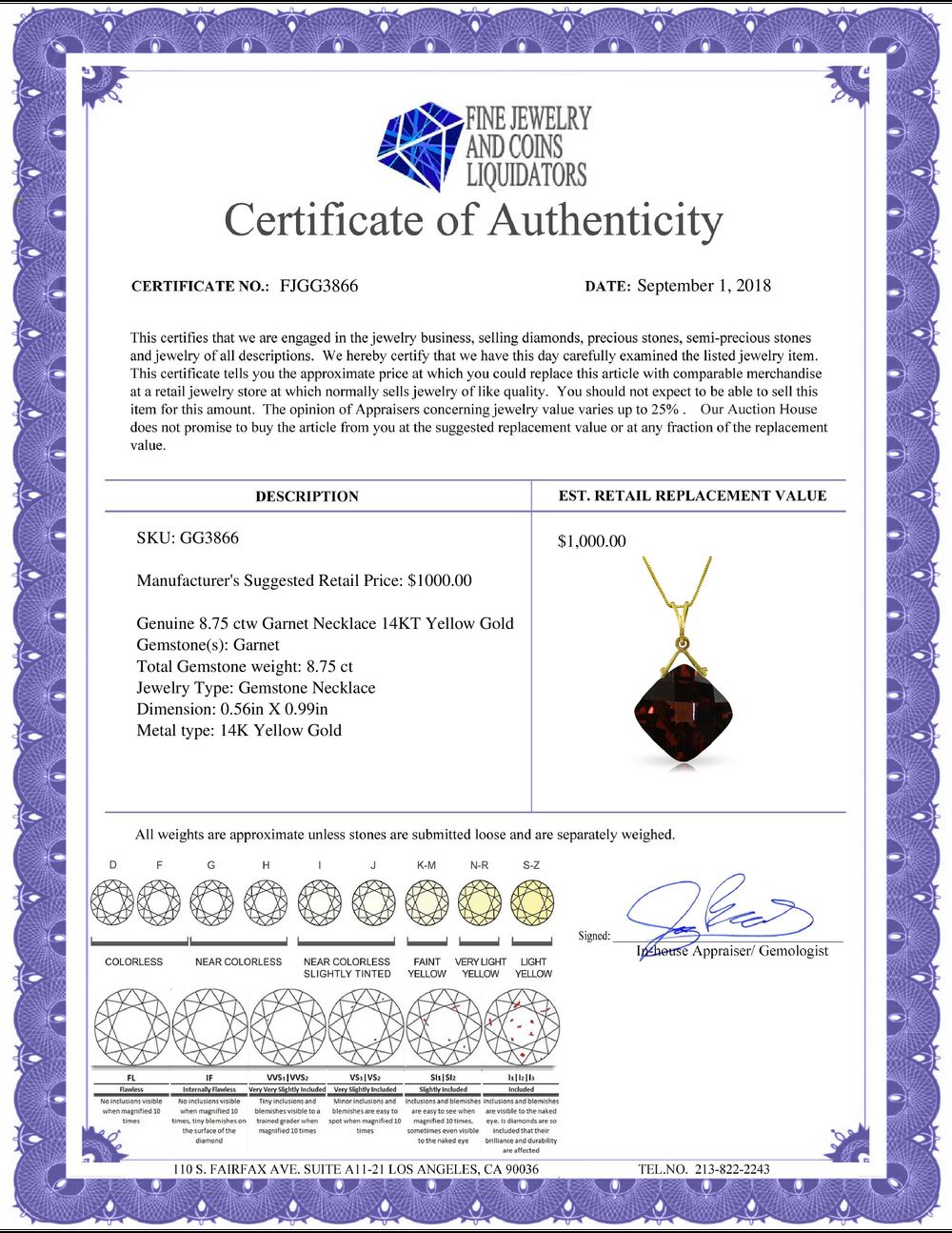 REF-31H9X - SKU: GG3866 ---- Genuine 8.75 ctw Garnet Necklace 14KT Yellow Gold