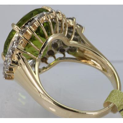 Main Stone: Peridot ; Carat Weight: 8.88ctw ; Gold Carat:14KT; Metal: Yellow Gold ; Ring Size: 6.5 ; Diamond Count: TD.95 ; Diamond Weight: 0.95 ; Gemstone Carat Weight: 7.93; Cut: OVAL