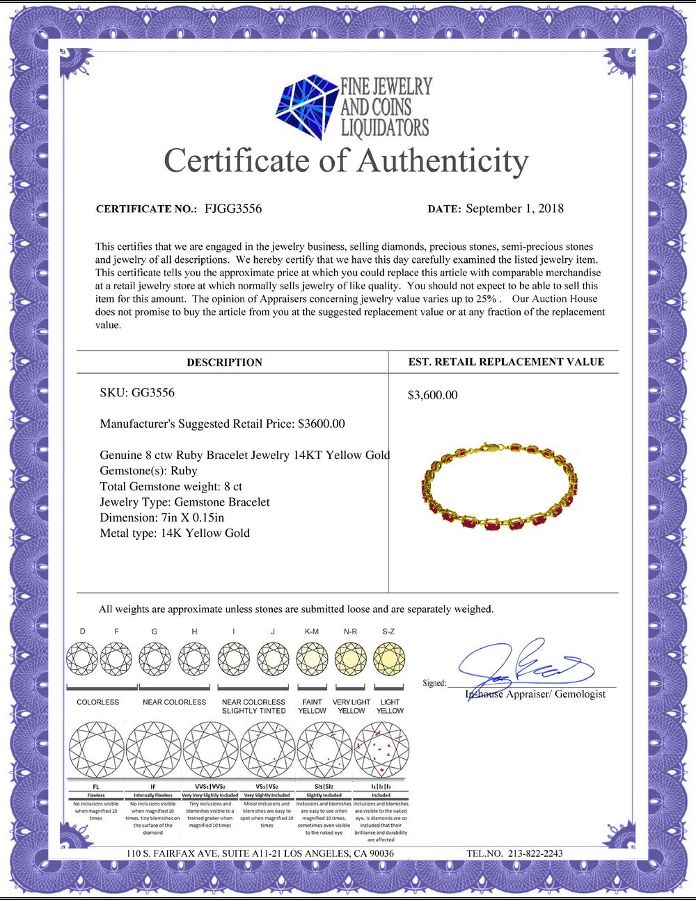 REF-119K7V ---- SKU:GG-3556 ---- Manufacturer's Suggested Retail Price: $3600.00 ---- Genuine 14K Yellow Gold 8 ctw Ruby Bracelet