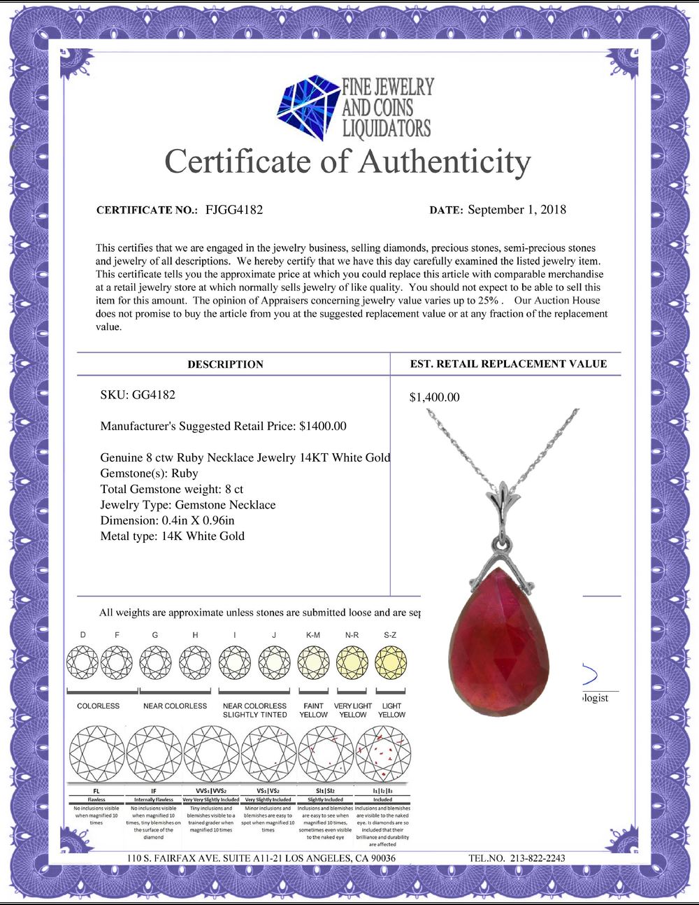 REF-46V5W - SKU: GG4182 ---- Genuine 8 ctw Ruby Necklace 14KT White Gold