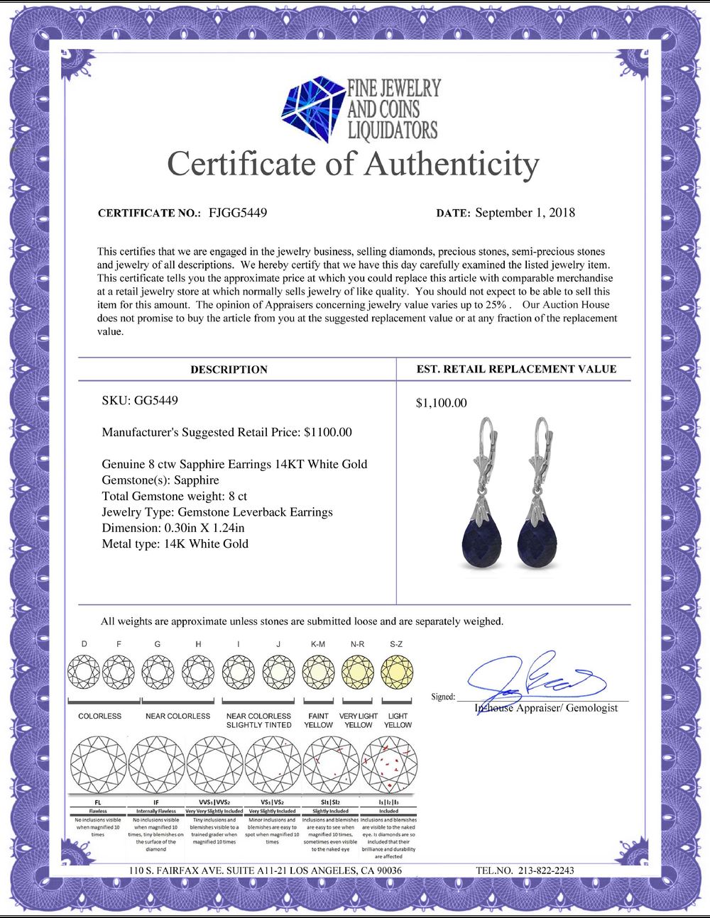 All Gia and EGL Diamonds are subject to availability due to consignors’ terms with us.