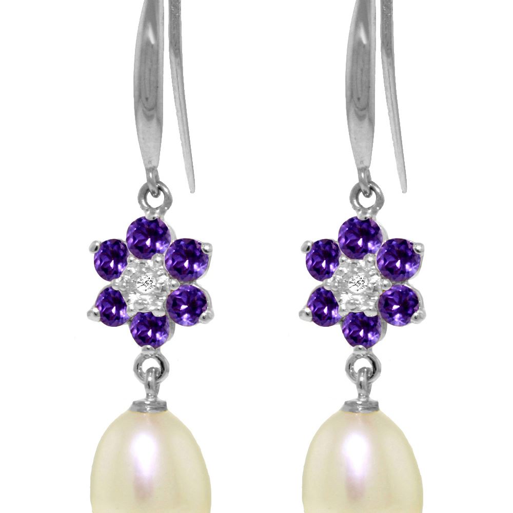 Genuine 14K White Gold 9.01 ctw Amethyst, Pearl & Diamond Earrings