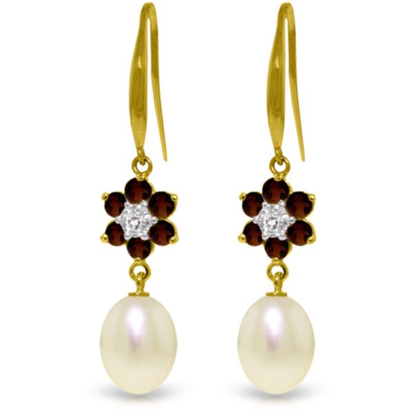 Genuine 9.01 ctw Garnet, Pearl & Diamond Earrings Jewelry 14KT Yellow Gold - REF-44R3P