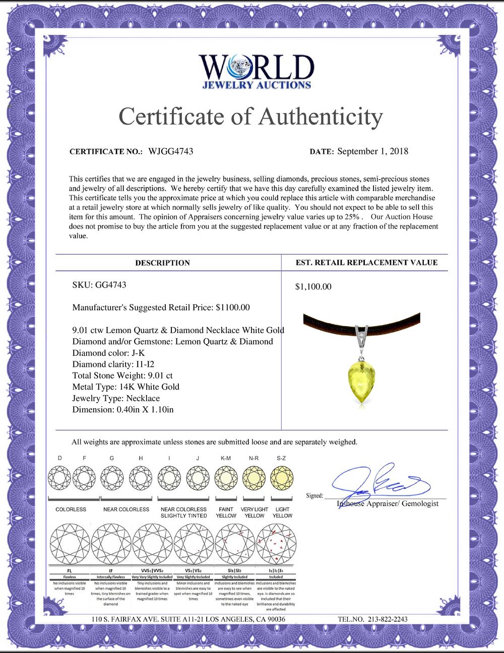 REF-35Z4N - SKU: GG4743 ---- Genuine 9.01 ctw Lemon Quartz & Diamond Necklace 14KT Rose Gold