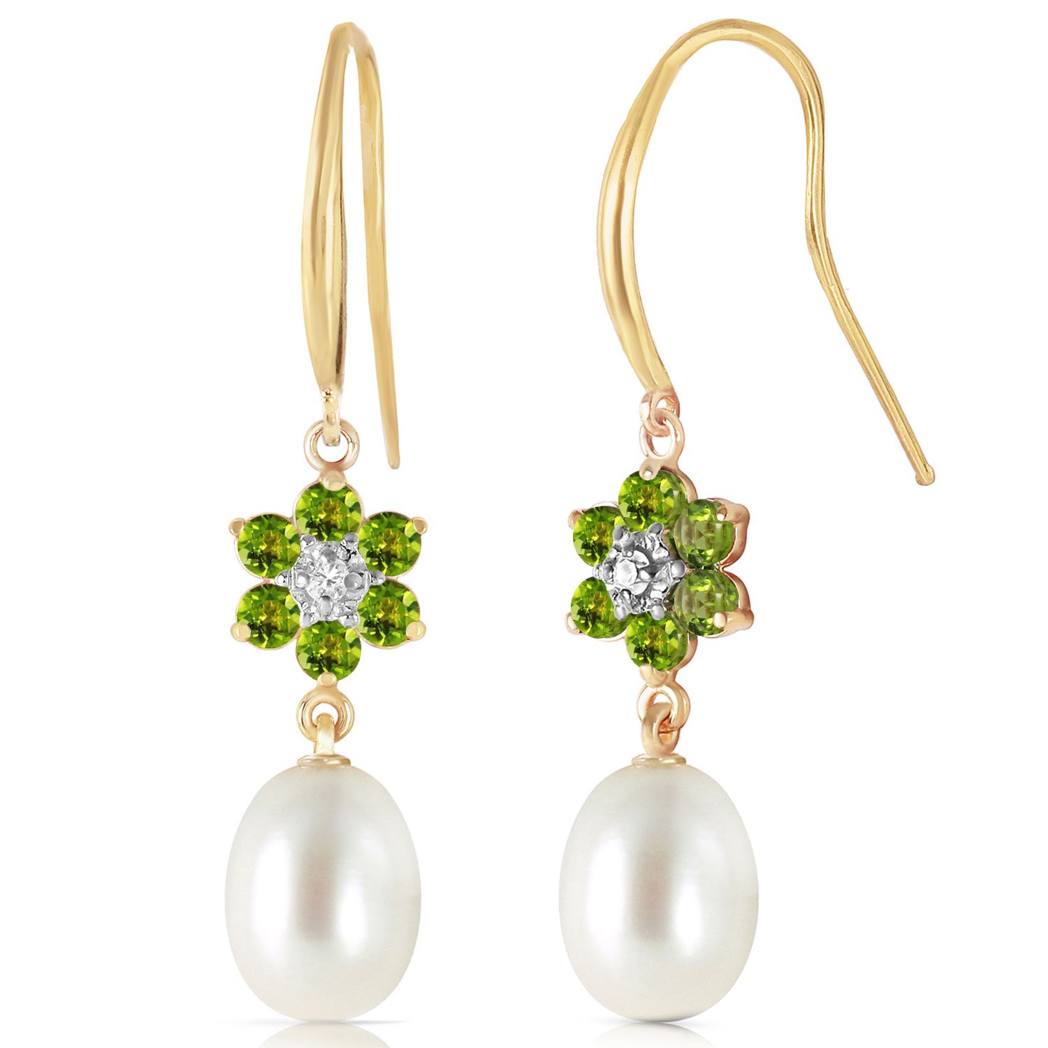 REF-44Y3F ---- SKU:GG-3432 ---- Manufacturer's Suggested Retail Price: $1400.00 ---- Genuine 14K Yellow Gold 9.01 ctw Peridot, Pearl & Diamond Earrings
