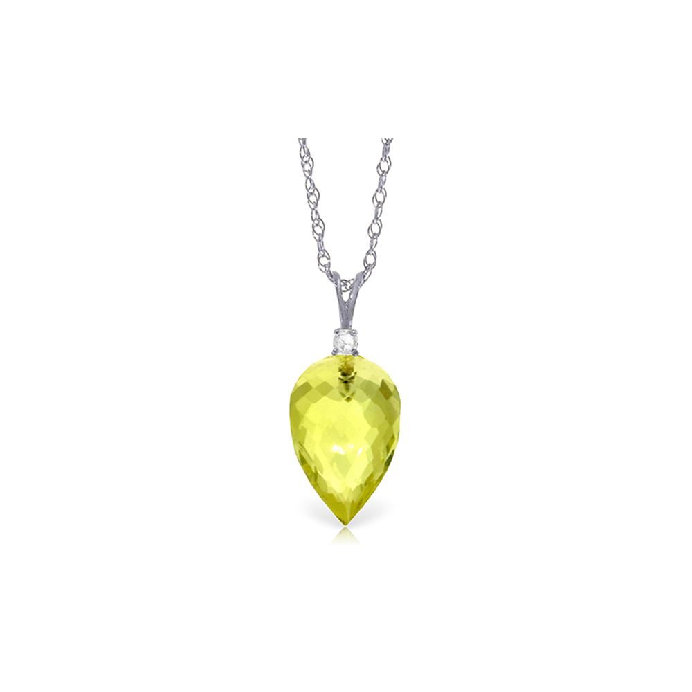 Genuine 14K White Gold 9.05 ctw Lemon Quartz & Diamond Necklace