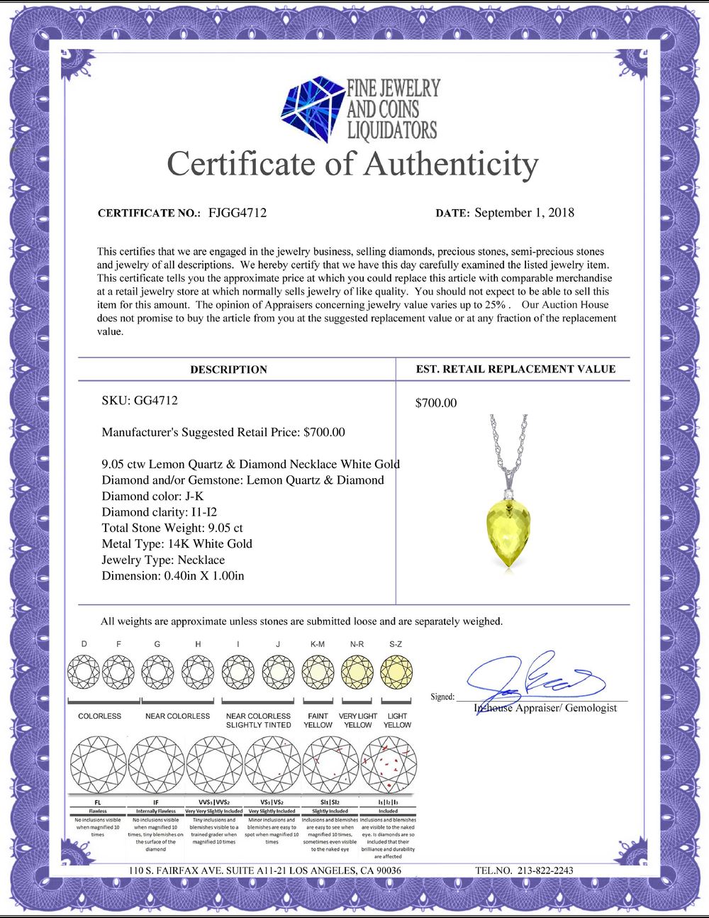 All Gia and EGL Diamonds are subject to availability due to consignors’ terms with us.