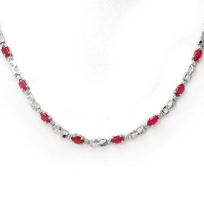 Gemstone: Ruby ; Diamond Clarity: SI1-SI2 ; Diamond Color: H-J ; Metal Purity: 10KT ; Metal: White ; Weight(g): 9.65 ; Diamond Count:2 Round Cut ; Diamond Weight: 0.03 ; Gemstone Cut: 24 Ovalcut ; Gemstone Weight: 9.02 ; Size/Dimension: Approx. Dim. 16"
