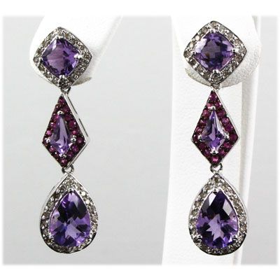 Genuine 9.13ct Amethyst Pink Tourmaline Diamond Ring **|**|** Mainstone: Amethyst & Pink Tourmaline ; Total CTW: 9.13 ; Gem QTY: 6 ; Gem CTW: 7 ; Gemstone 2: Pink Tourmaline ; Gemstone CTW 2: ; Dia/CTW: 0.85 ; Diamond Count: 70 ; Diamond Shape: Round ; Grams/Total: 6.25 ; Metal/Purity: 14kt W/G ; MSRP: $2000