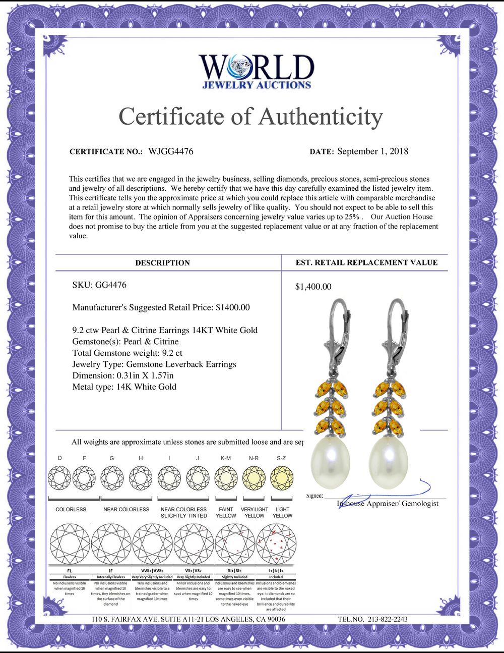 REF-45Y8F - SKU: GG4476 ---- Genuine 9.2 ctw Pearl & Citrine Earrings 14KT White Gold
