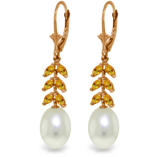 REF-45X8M ---- SKU:GG-4476 ---- Manufacturer's Suggested Retail Price: $1400.00 ---- Genuine 14K Rose Gold 9.2 ctw Pearl & Citrine Earrings