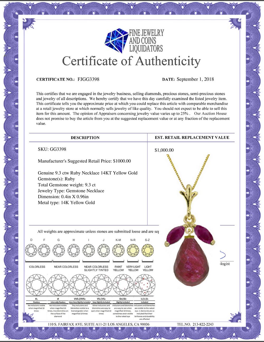 Genuine 14K Yellow Gold 9.3 ctw Ruby Necklace