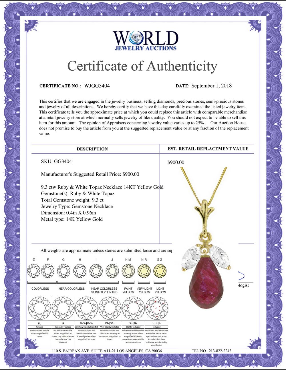 REF-28A9K - SKU: GG3404 ---- Genuine 9.3 ctw Ruby & White Topaz Necklace 14KT Yellow Gold