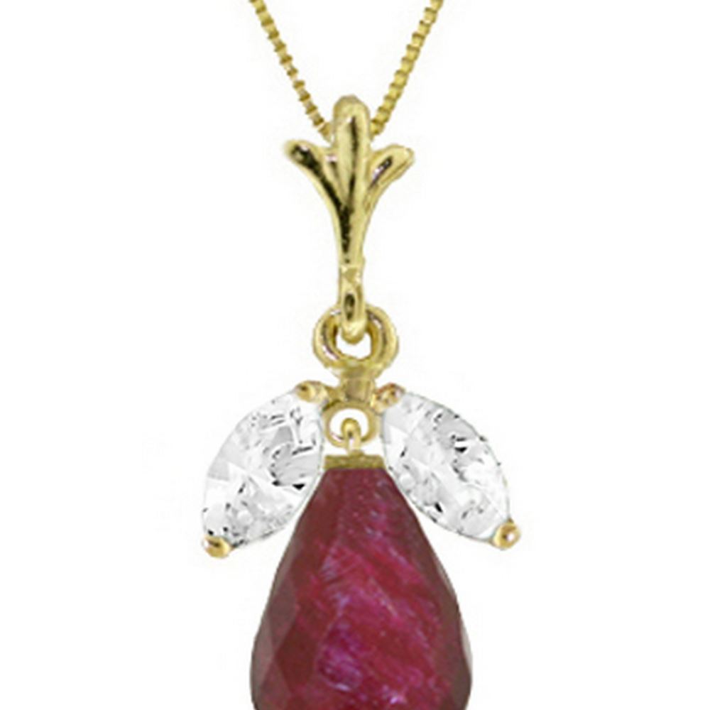 Genuine 14K Yellow Gold 9.3 ctw Ruby & White Topaz Necklace