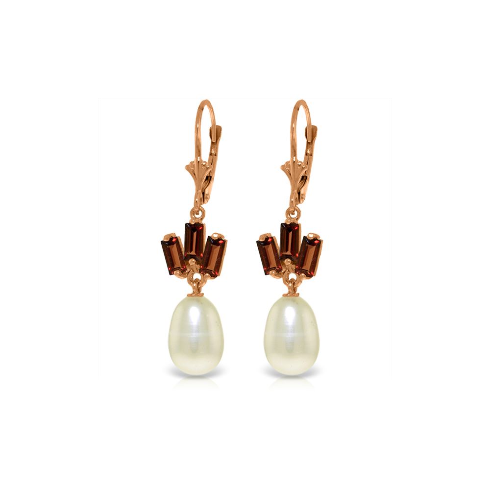 Genuine 14K Rose Gold 9.35 ctw Pearl & Garnet Earrings