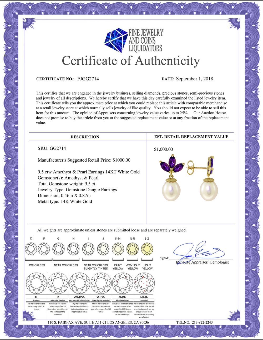 REF-31K2V - SKU: GG2714 ---- Genuine 9.5 ctw Amethyst & Pearl Earrings 14KT White Gold