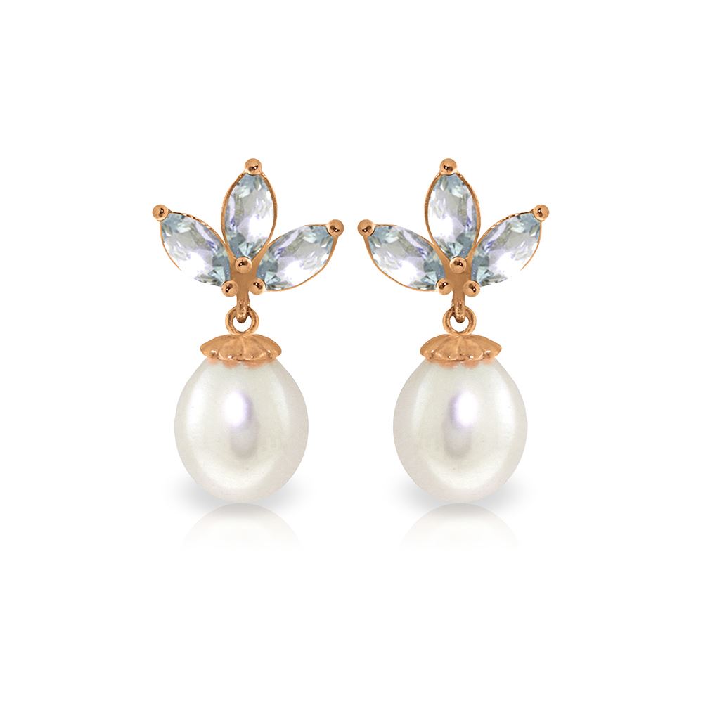 Genuine 14K Rose Gold 9.5 ctw Aquamarine & Pearl Earrings