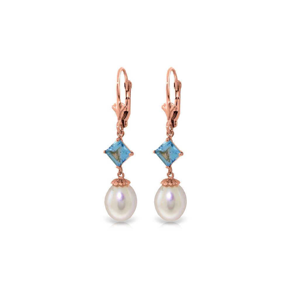 REF-24N4R - SKU: GG2455 ---- Genuine 9.5 ctw Blue Topaz Earrings 14KT Rose Gold