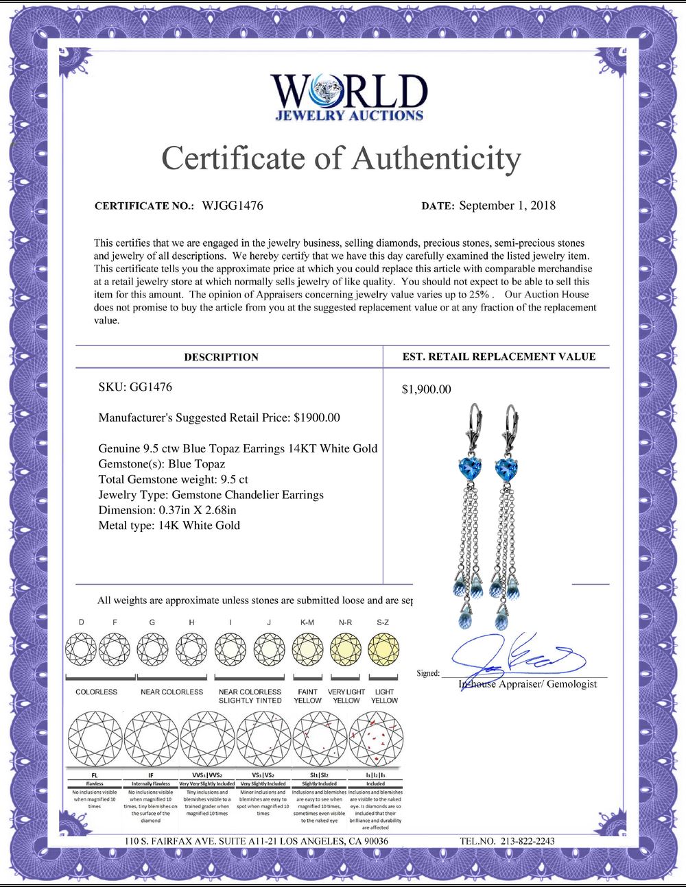 REF-62R2P - SKU: GG1476 ---- Genuine 9.5 ctw Blue Topaz Earrings 14KT White Gold