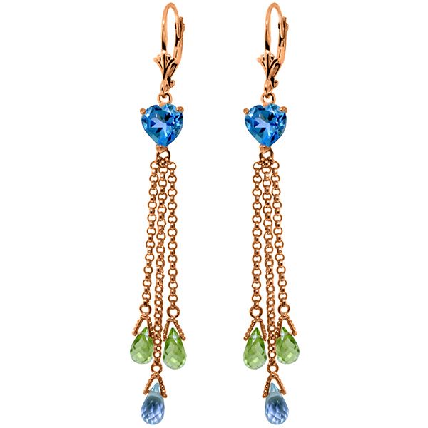 REF-62W2Y ---- SKU:GG-1474 ---- Manufacturer's Suggested Retail Price: $1900.00 ---- Genuine 14K Rose Gold 9.5 ctw Blue Topaz & Peridot Earrings