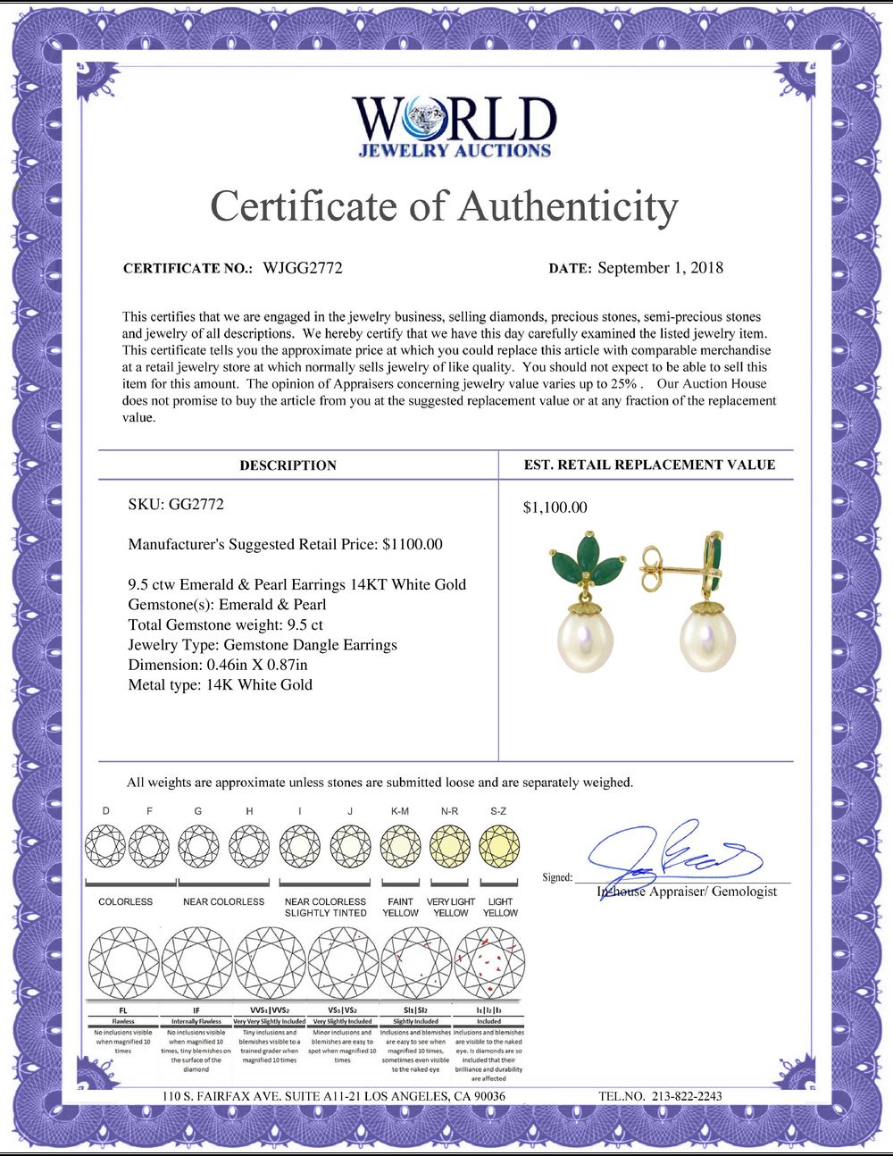 REF-35F2Z - SKU: GG2772 ---- Genuine 9.5 ctw Emerald & Pearl Earrings 14KT Rose Gold