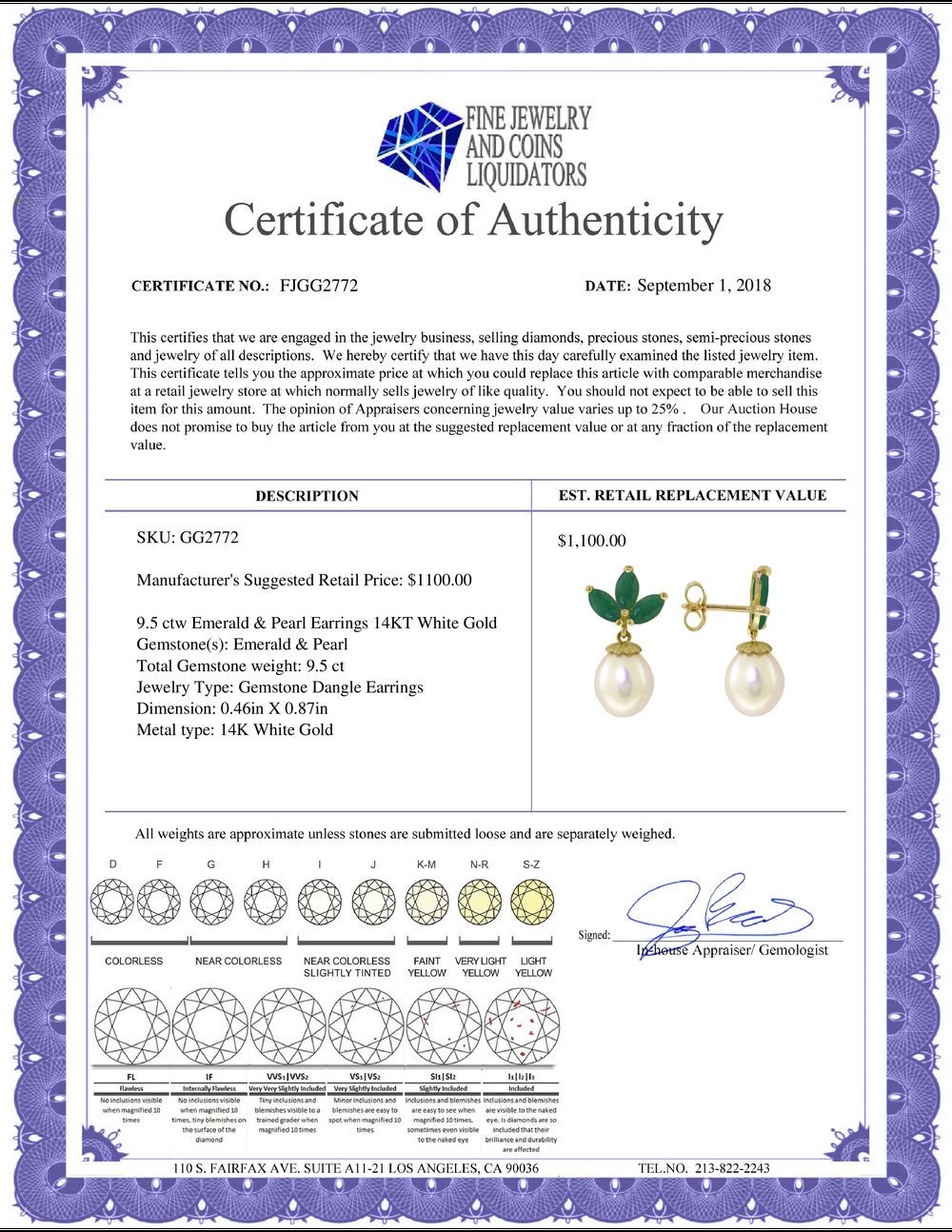 REF-35F2Z - SKU: GG2772 ---- Genuine 9.5 ctw Emerald & Pearl Earrings 14KT Rose Gold