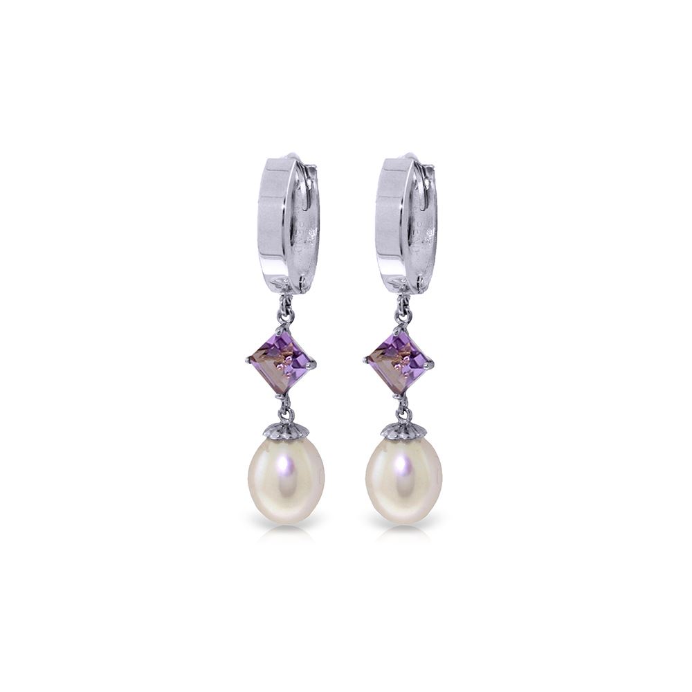 Genuine 14K White Gold 9.5 ctw Pearl & Amethyst Earrings