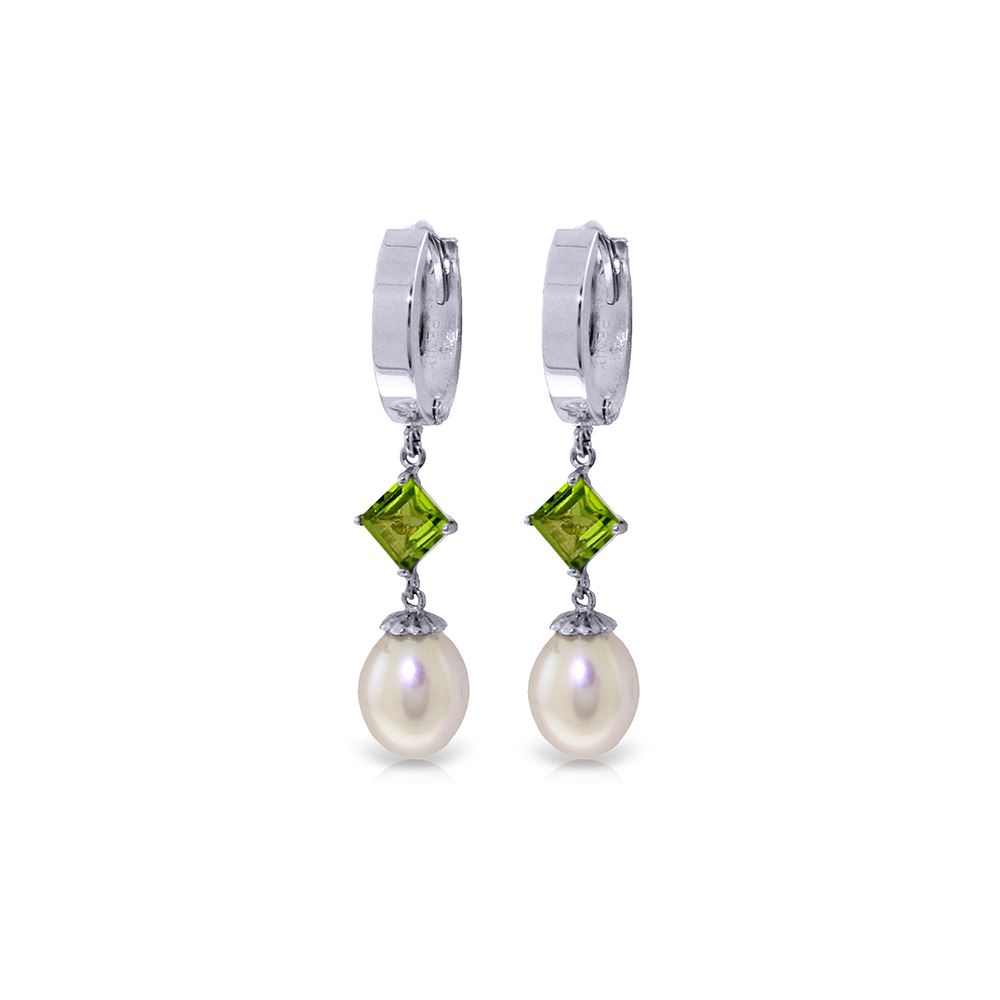Genuine 14K White Gold 9.5 ctw Pearl & Peridot Earrings