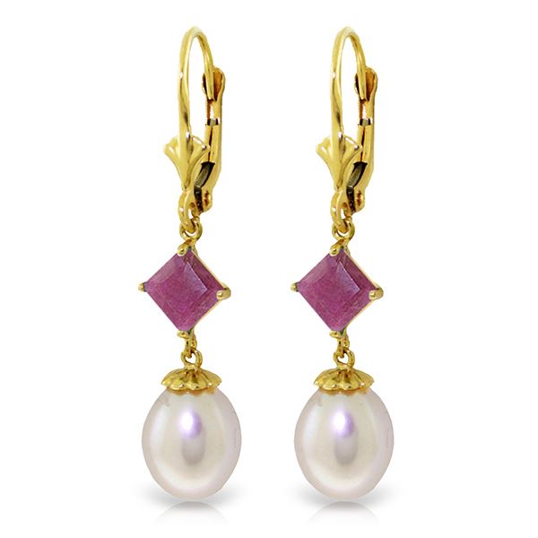 REF-29R7P ---- SKU:GG-2467 ---- Manufacturer's Suggested Retail Price: $900.00 ---- Genuine 14K Yellow Gold 9.5 ctw Pearl & Ruby Earrings