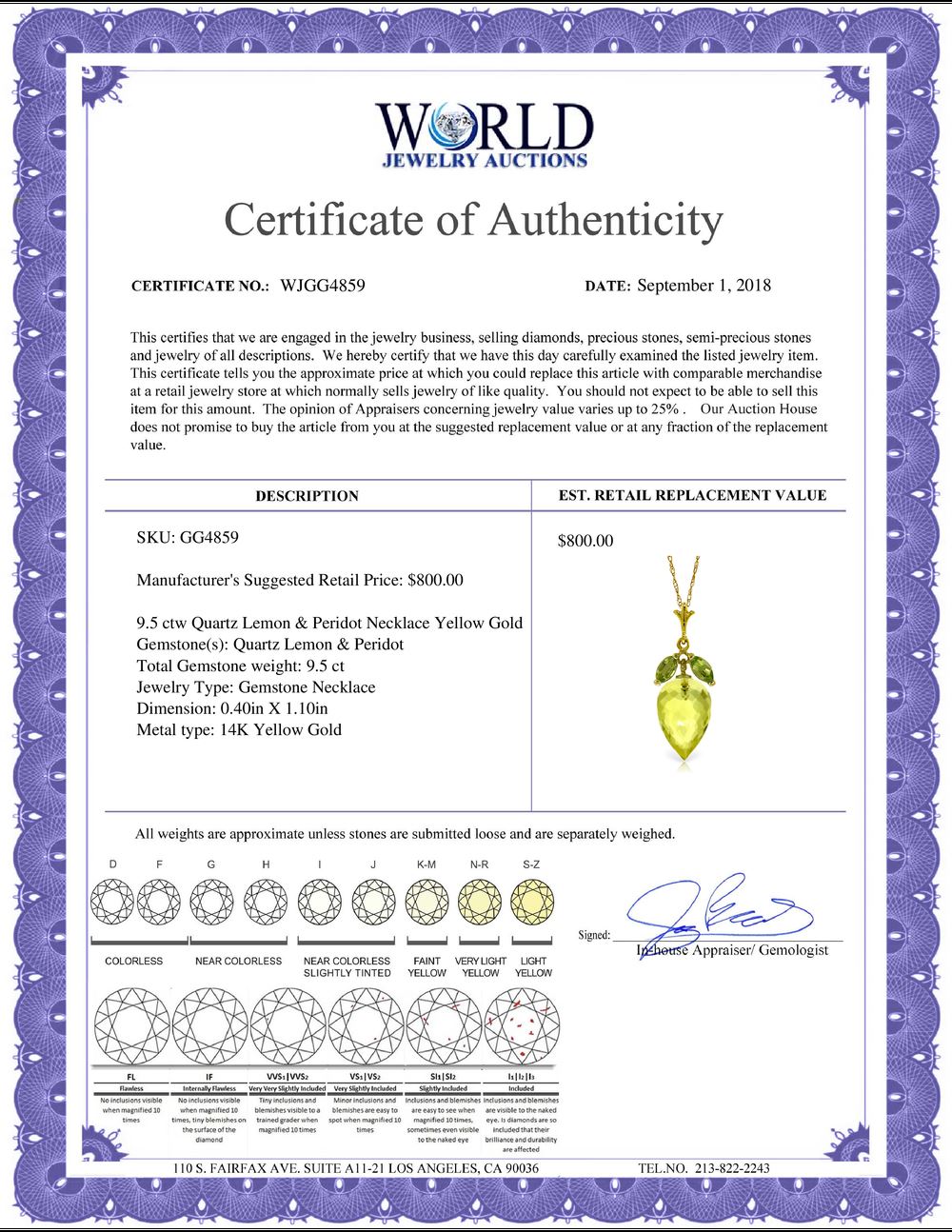 REF-25K8V - SKU: GG4859 ---- Genuine 9.5 ctw Quartz Lemon & Peridot Necklace 14KT Yellow Gold