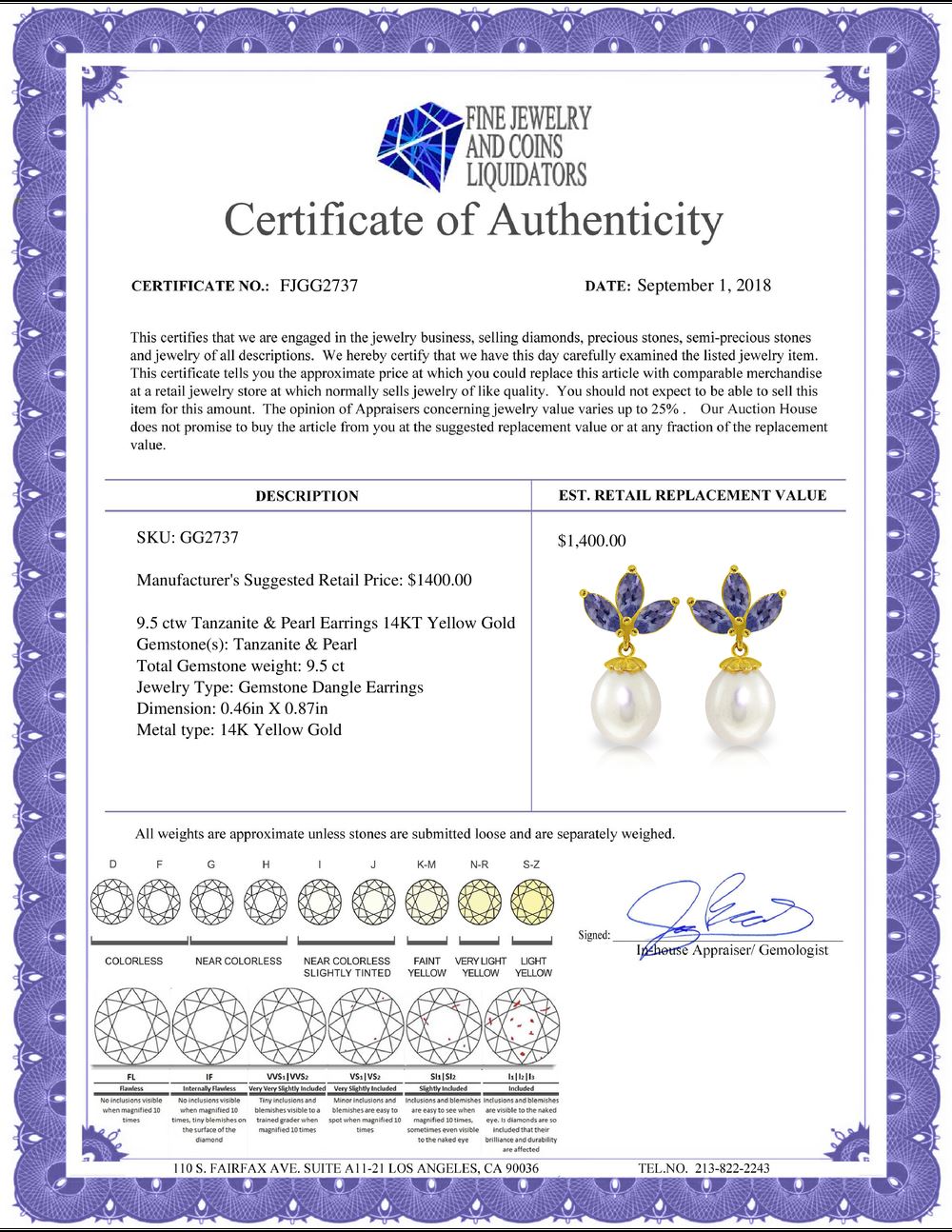 Genuine 14K Yellow Gold 9.5 ctw Tanzanite & Pearl Earrings