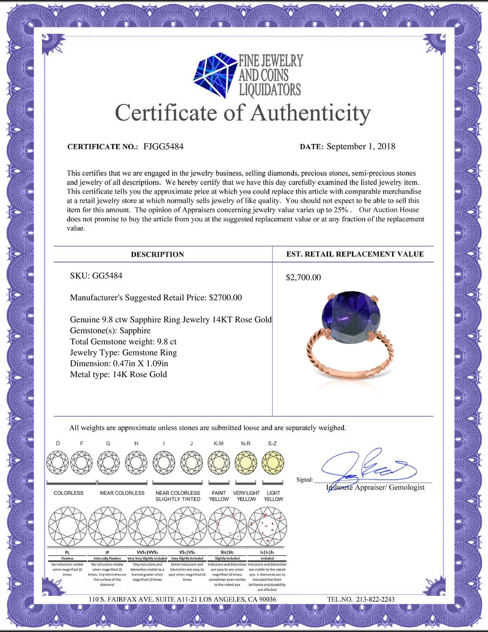 REF-88Z8N - SKU: GG5484 ---- Genuine 9.8 ctw Sapphire Ring 14KT White Gold