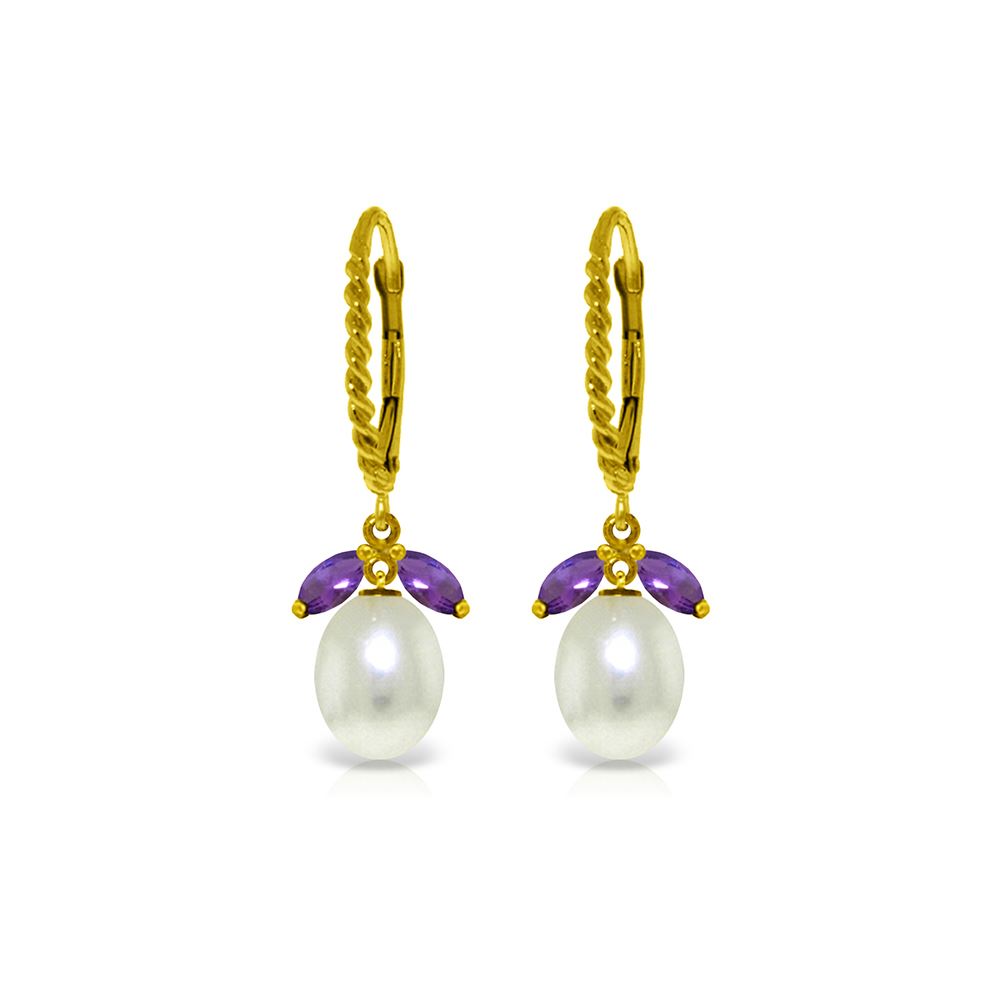 Genuine 14K Yellow Gold 9 ctw Amethyst & Pearl Earrings