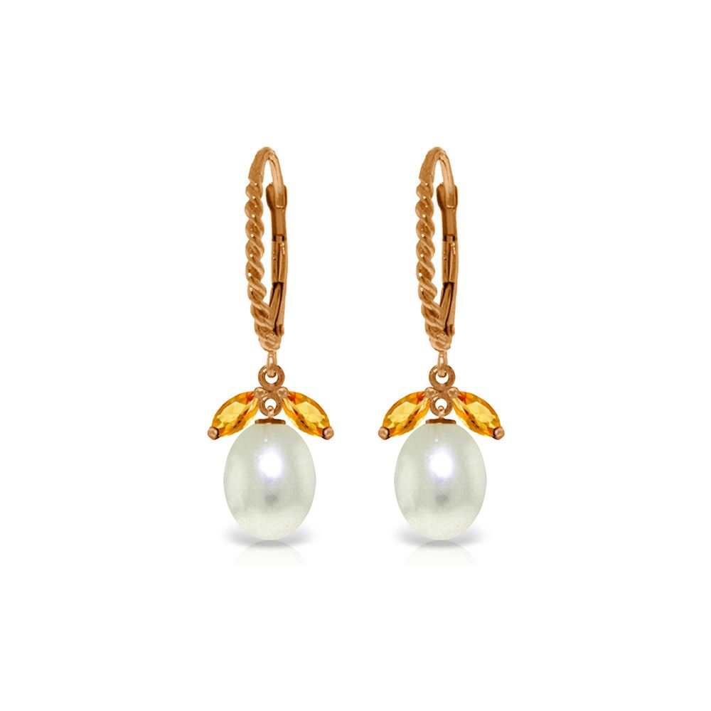 Genuine 14K Rose Gold 9 ctw Citrine & Pearl Earrings