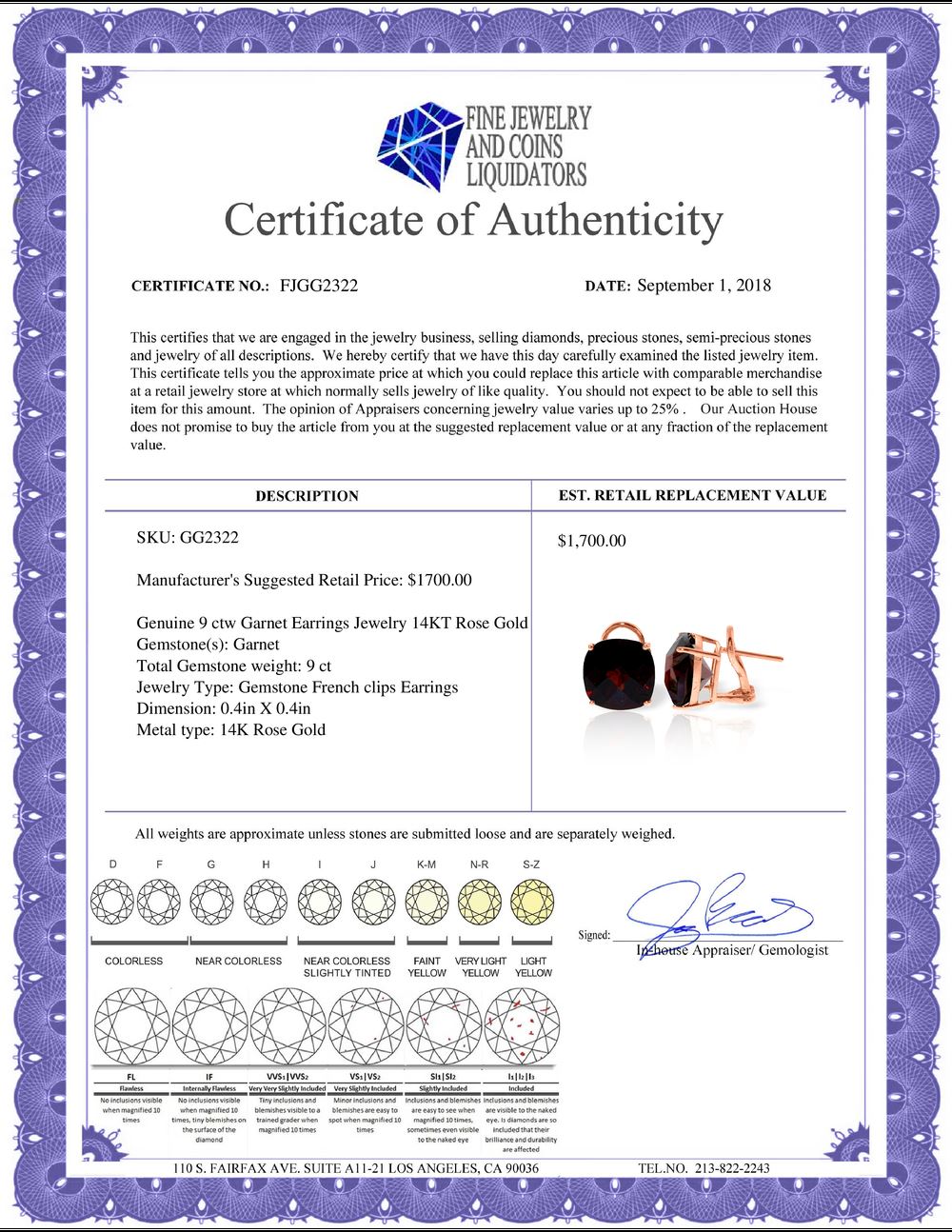 REF-56R4P - SKU: GG2322 ---- Genuine 9 ctw Garnet Earrings 14KT Rose Gold